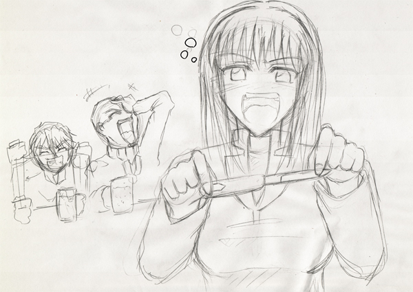 ちなみに下描き時はこんなんでした。セツコの顔がもっとはっちゃけた感じでした。