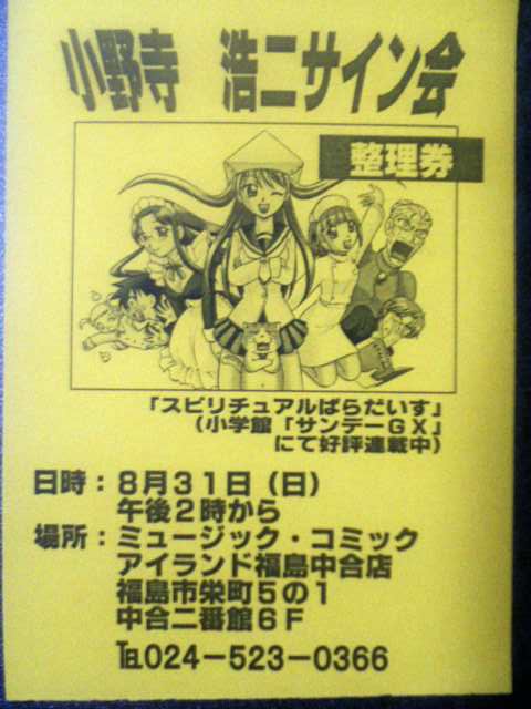 さて、残る夏のイベントは小野寺先生のサイン会だなぁ…。