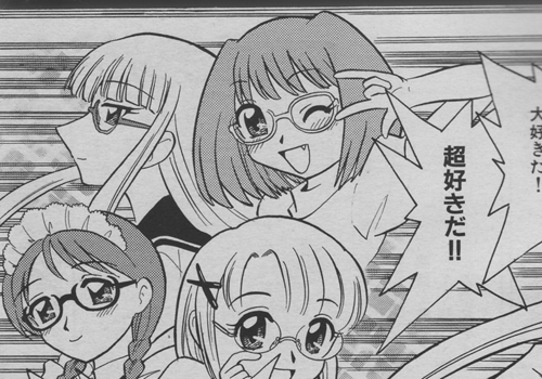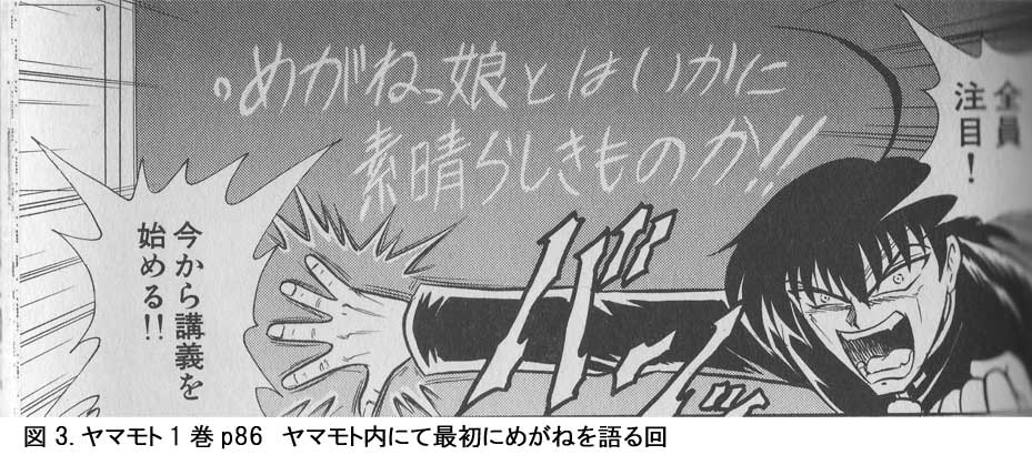 メビウスジャンパー(以下略して『メビジャン』。勝手に決めました)は、系統としては『妄想戦士ヤマモト』と同じ、主人公(ひいては作者)の熱い想いをブチまける作品です。めがねに突出した『ヤマモト』と思っていただければ良いかと。同様な作品でもある『キミとボクとの∞』との差別化は、「めがねの歴史を語る」、という点で為されています(『∞』の方は単行本待ちなので、さらっとしか見てませんが)。